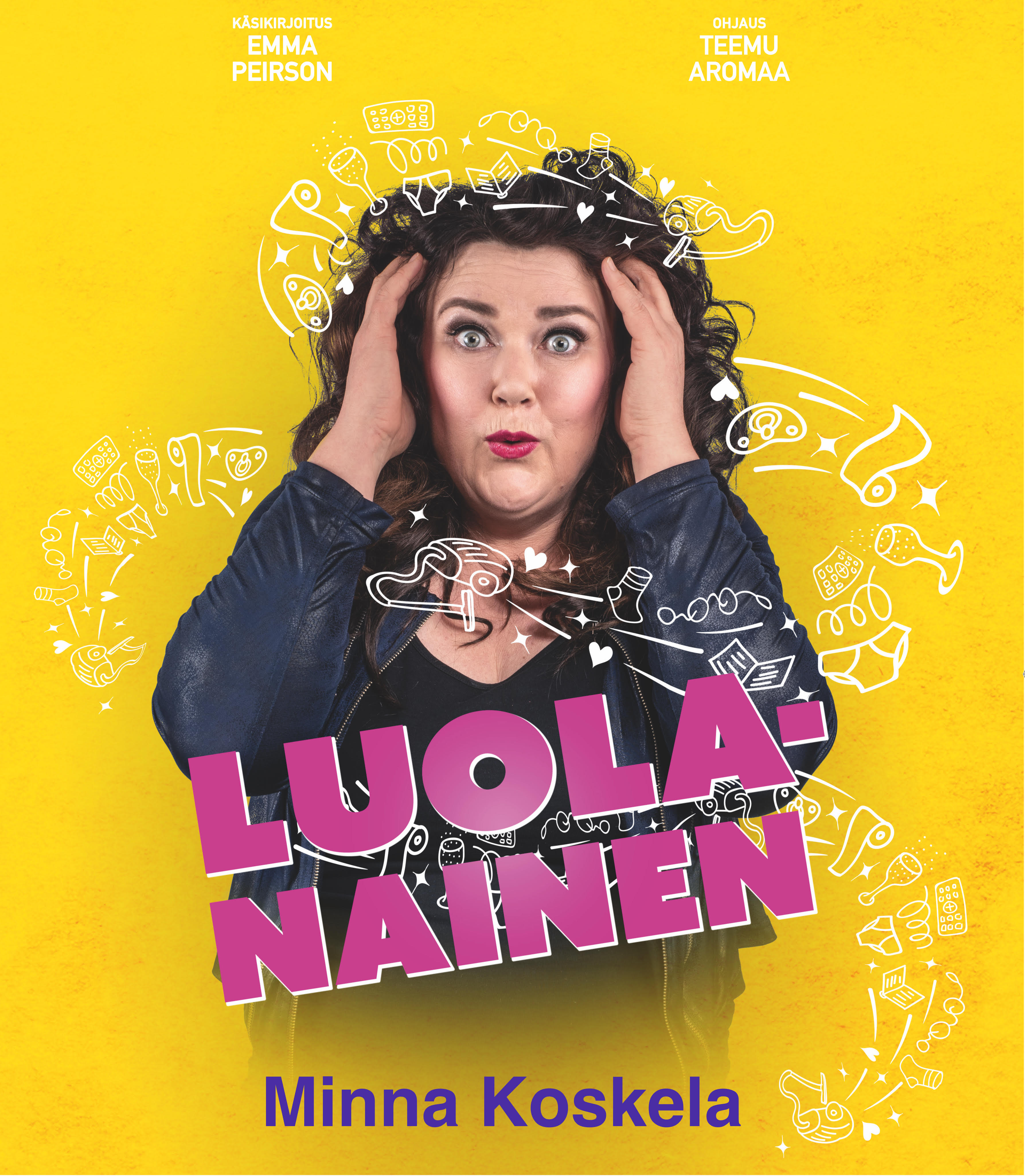 Minna Koskela, näyttelijä ja koomikko on tunnettu mm. legendaarisesta Kumman kaa-sarjan Elluna tai Tampereen Komediateatterin suursuositusta 'Pokka pitää'-komediasta, jossa Minna näytteli Hyacinth Bucketin päähahmoa lähes 200 kertaa täysille katsomoille. Minnan voit nähdä myös 'Salatut elämät' -TV-sarjassa.