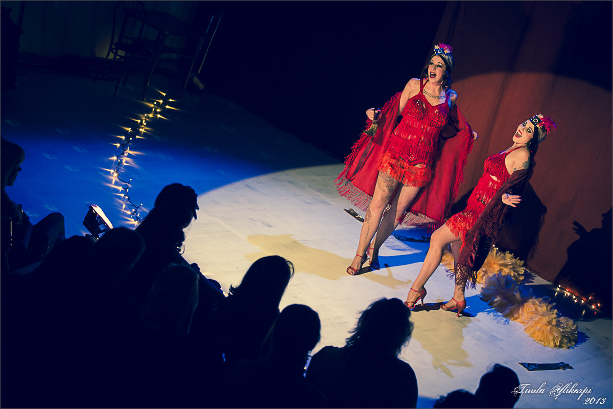 Sopivan mittainen esitys iltaan, jossa on myös muuta ohjelmaa. Pitää sisällään bändinumeroita sekä livenä säestettyjä burleskinumeroita.