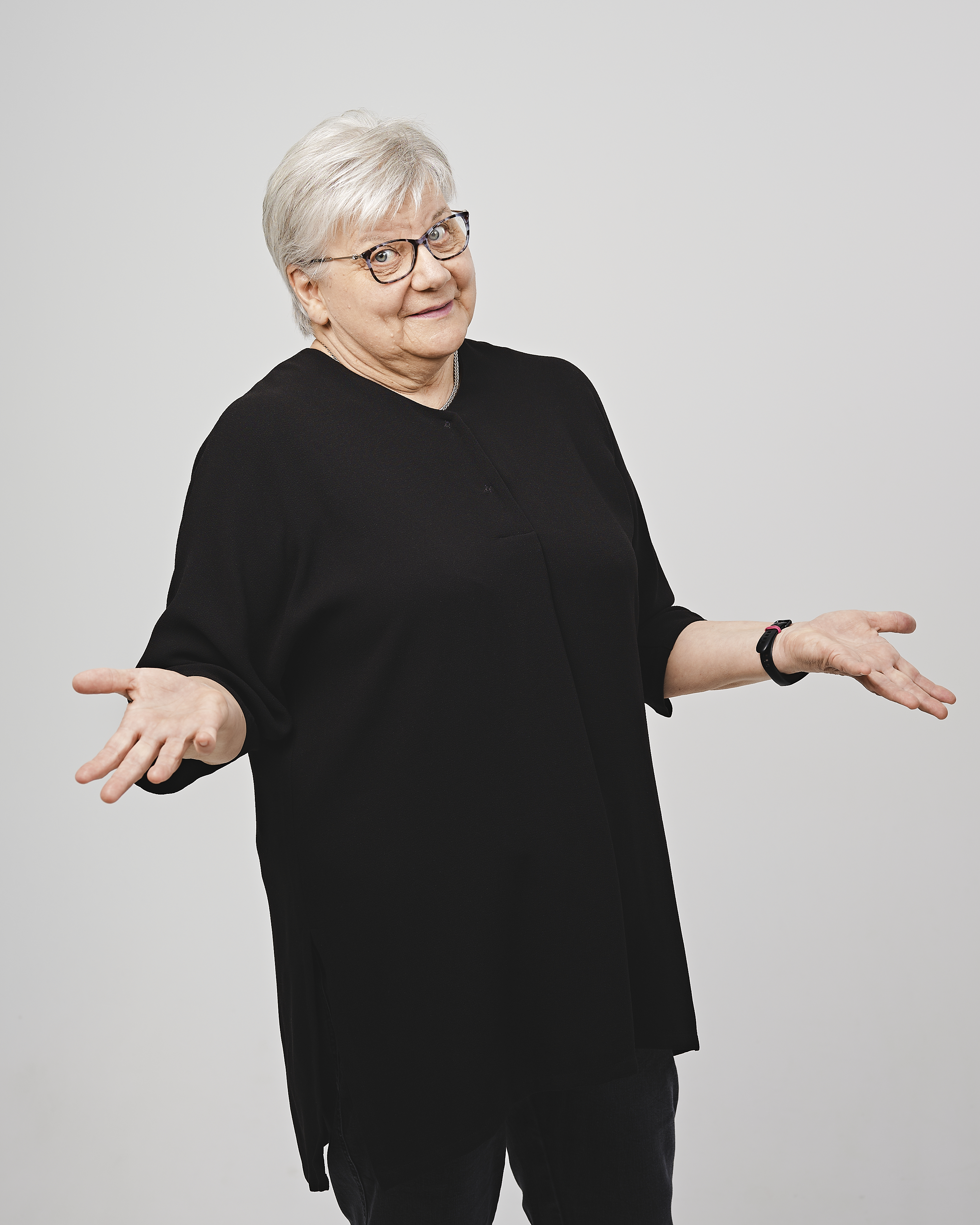 Stand up -koomikko Tiina Henkola katsoo maailmaa ja elämää kokeneen, kiltin seniorin silmin etsien kuitenkin innokkaasti ratkaisuja ongelmiin yllättävin keinoin unohtamatta humaania perusvirettä. Tässä häntä auttaa tekninen koulutustausta sekä pitkä ura insinöörismiesten kehittävässä seurassa.